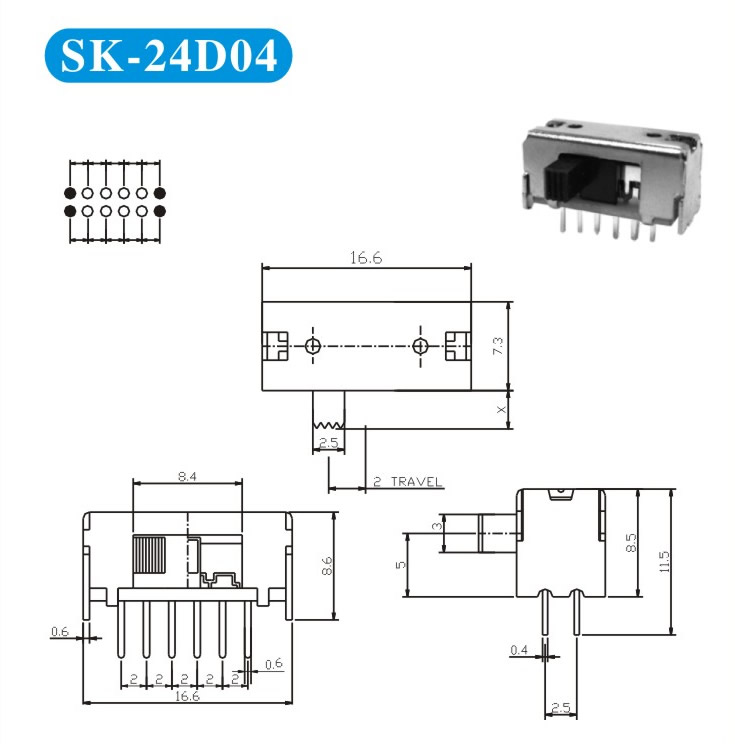 SK-24D04 詳細(xì)資料 產(chǎn)品說明: 技術(shù)指標(biāo): 使用溫度范圍 -20~+70℃ 耐壓 AC250V(50Hz)/min 額定負(fù)荷 DC 50V 0.5A 動(dòng)作力 250±100gf 接觸電阻 ≤0.05Ω 機(jī)械壽命 10000次 絕緣電阻 ≥100MΩ
