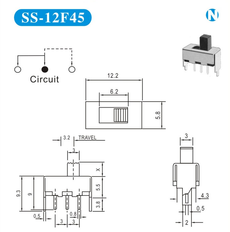 SS-12F45 詳細(xì)資料 產(chǎn)品說(shuō)明: 技術(shù)指標(biāo): 使用溫度范圍 -20~+70℃ 耐壓 AC250V(50Hz)/min 額定負(fù)荷 DC 50V 0.5A 動(dòng)作力 250±100gf 接觸電阻 ≤0.05Ω 機(jī)械壽命 10000次 絕緣電阻 ≥100MΩ