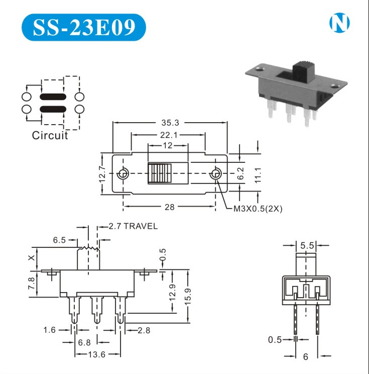 SS-23E09 詳細資料 產(chǎn)品說明: 技術指標: 使用溫度范圍 -20~+70℃ 耐壓 AC250V(50Hz)/min 額定負荷 DC 50V 0.5A 動作力 250±100gf 接觸電阻 ≤0.05Ω 機械壽命 10000次 絕緣電阻 ≥100MΩ