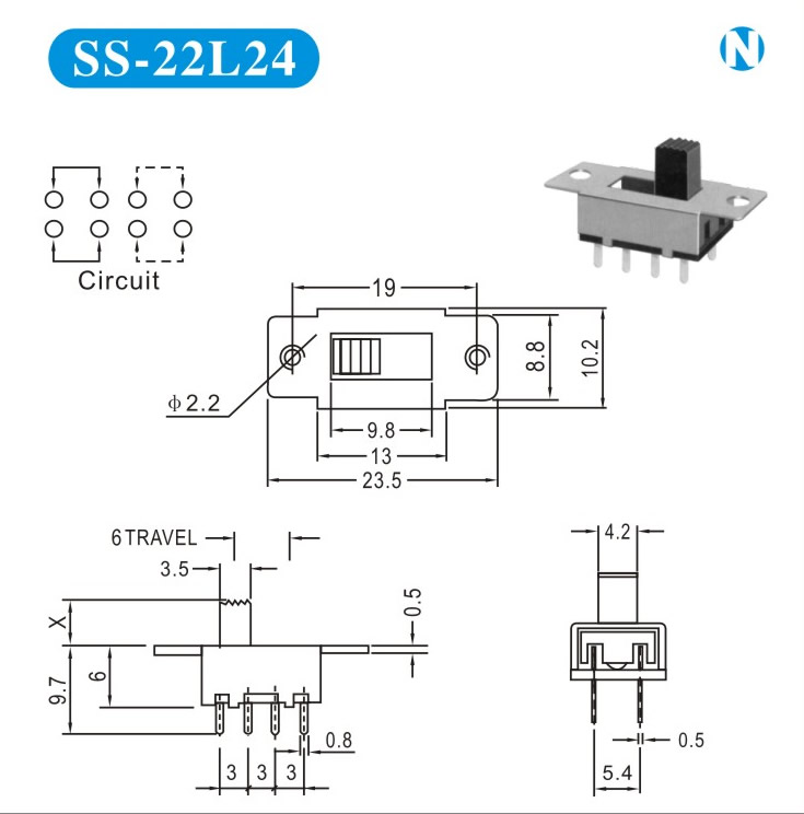 SS-22L24 詳細(xì)資料 產(chǎn)品說(shuō)明: 技術(shù)指標(biāo): 使用溫度范圍 -20~+70℃ 耐壓 AC250V(50Hz)/min 額定負(fù)荷 DC 50V 0.5A 動(dòng)作力 250±100gf 接觸電阻 ≤0.05Ω 機(jī)械壽命 10000次 絕緣電阻 ≥100MΩ