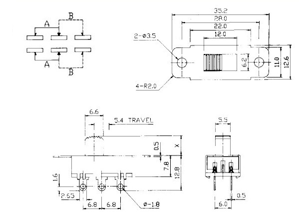 SS-22L05 詳細資料 產(chǎn)品說明: 技術指標: 使用溫度范圍 -20~+70℃ 耐壓 AC250V(50Hz)/min 額定負荷 DC 50V 0.5A 動作力 250±100gf 接觸電阻 ≤0.05Ω 機械壽命 10000次 絕緣電阻 ≥100MΩ