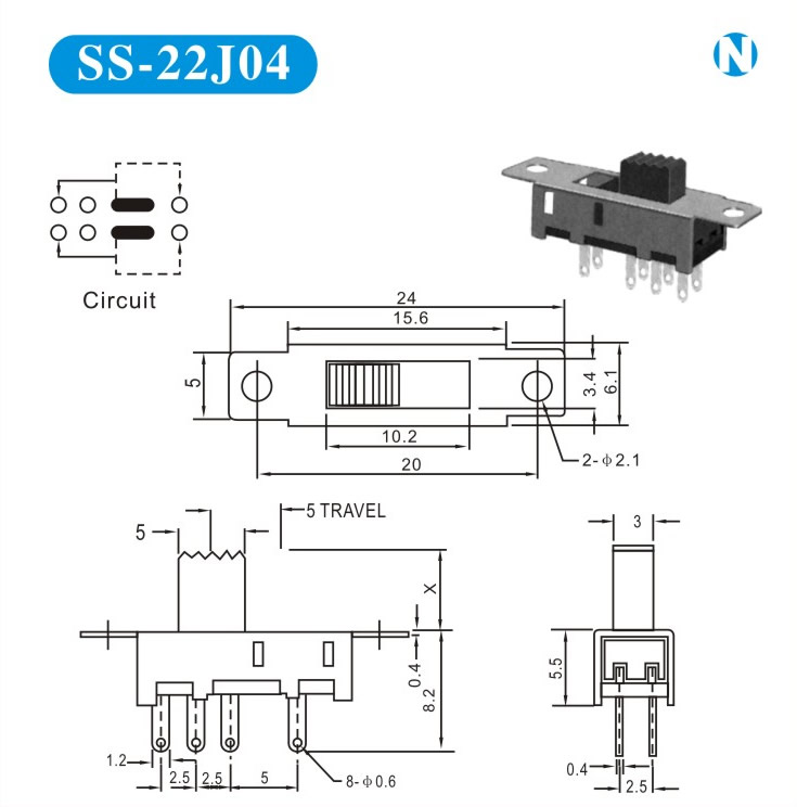 SS-22J04 詳細資料 產(chǎn)品說明: 技術(shù)指標: 使用溫度范圍 -20~+70℃ 耐壓 AC250V(50Hz)/min 額定負荷 DC 50V 0.5A 動作力 250±100gf 接觸電阻 ≤0.05Ω 機械壽命 10000次 絕緣電阻 ≥100MΩ