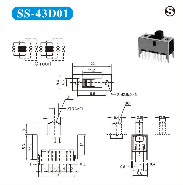 SS-43D01 詳細(xì)資料 產(chǎn)品說明: 技術(shù)指標(biāo): 使用溫度范圍 -20~+70℃ 耐壓 AC250V(50Hz)/min 額定負(fù)荷 DC 50V 0.5A 動作力 250±100gf 接觸電阻 ≤0.05Ω 機(jī)械壽命 10000次 絕緣電阻 ≥100MΩ