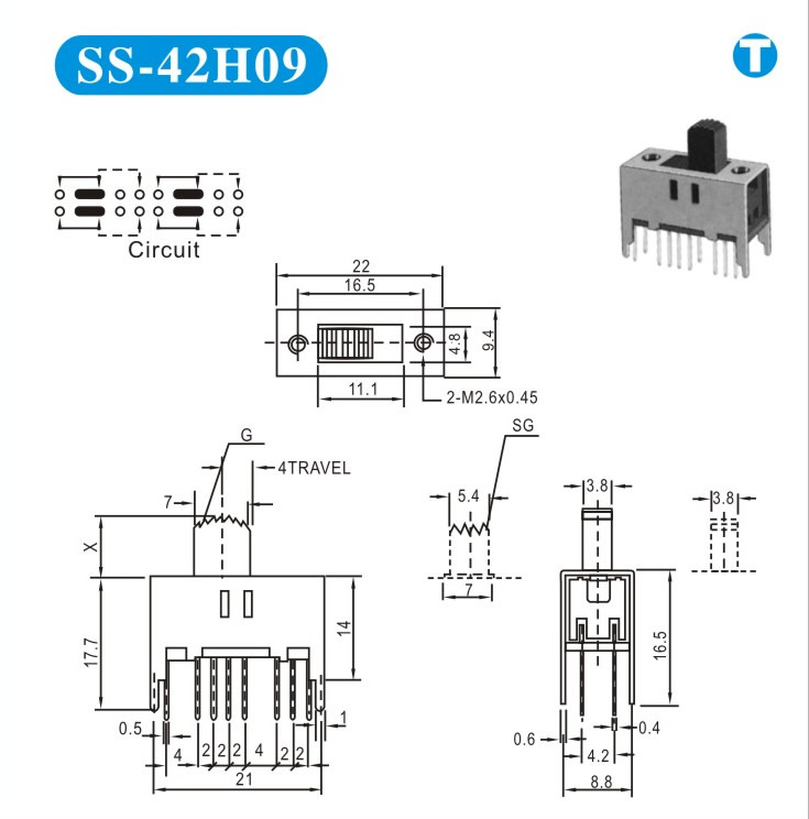 額定負荷 DC 50V  0.5A 動作力 250±100gf