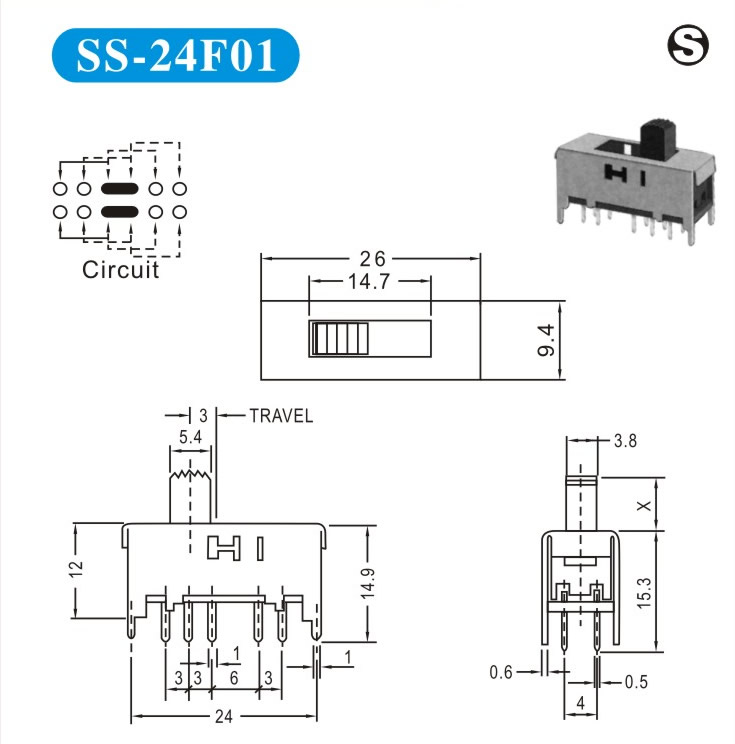 SS-24F01 詳細(xì)資料 產(chǎn)品說明: 技術(shù)指標(biāo): 使用溫度范圍 -20~+70℃ 耐壓 AC250V(50Hz)/min 額定負(fù)荷 DC 50V 0.5A 動(dòng)作力 250±100gf 接觸電阻 ≤0.05Ω 機(jī)械壽命 10000次 絕緣電阻 ≥100MΩ