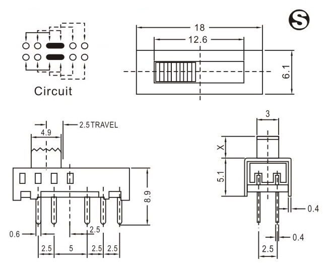 額定負(fù)荷 DC 50V  0.5A 動(dòng)作力 250±100gf