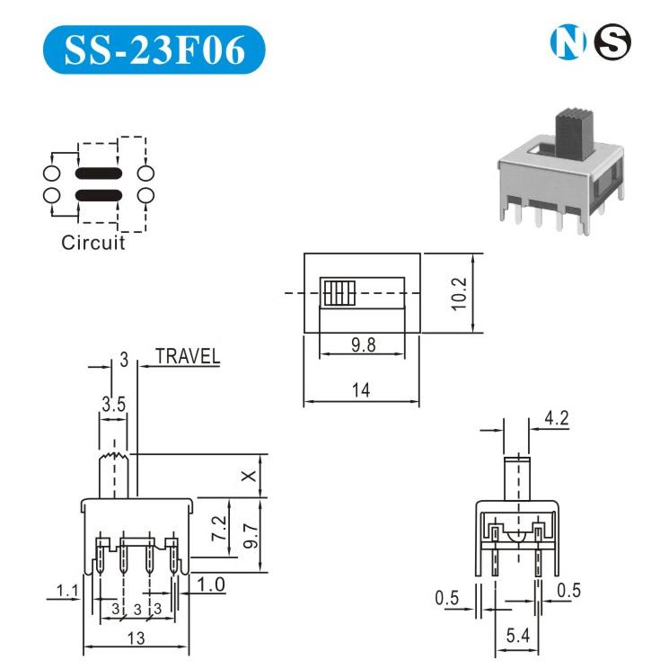 SS-23F06 詳細資料 產(chǎn)品說明: 技術指標: 使用溫度范圍 -20~+70℃ 耐壓 AC250V(50Hz)/min 額定負荷 DC 50V 0.5A 動作力 250±100gf 接觸電阻 ≤0.05Ω 機械壽命 10000次 絕緣電阻 ≥100MΩ
